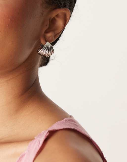 ASOS DESIGN - Sølvfarvede hoop-øreringe med rillet design
