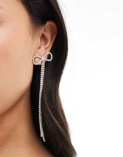 ASOS DESIGN - Sølvfarvede ørestikker med krystalsløjfedesign