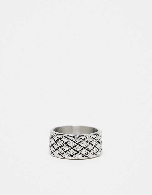 ASOS DESIGN - Sølvfarvet båndring i vandtæt rustfrit stål med flettet tekstur