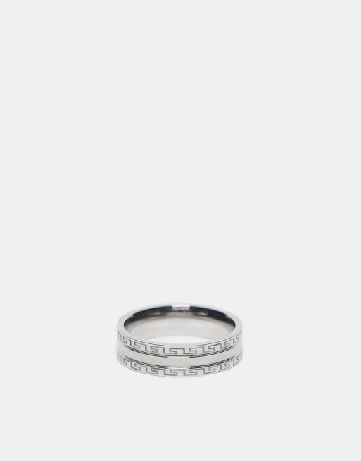 ASOS DESIGN - Sølvfarvet båndring med græsk bølgedesign på kanterne i vandtæt, rustfrit stål