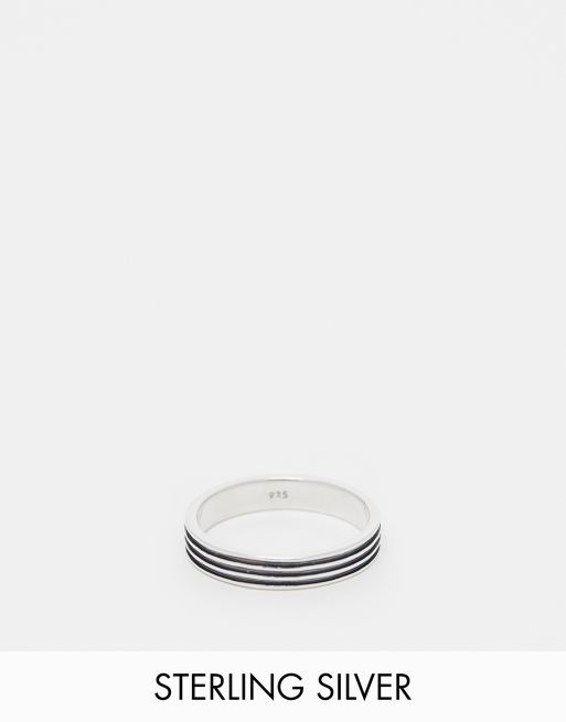 ASOS DESIGN - Sølvfarvet båndring med prægning i sterlingsølv