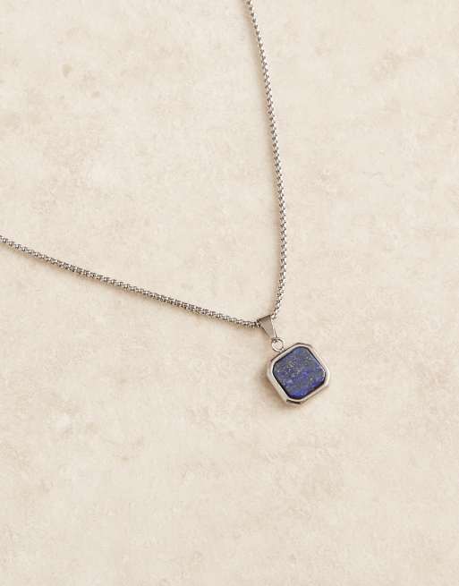 ASOS DESIGN - Sølvfarvet halskæde i vandafvisende rustfrit stål med firkantet vedhæng med blå lapis-sten