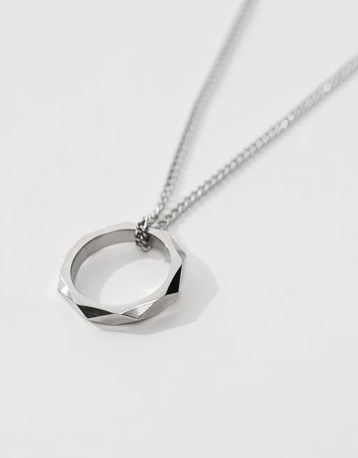 ASOS DESIGN - Sølvfarvet halskæde med ringvedhæng i vandfast og rustfrit stål