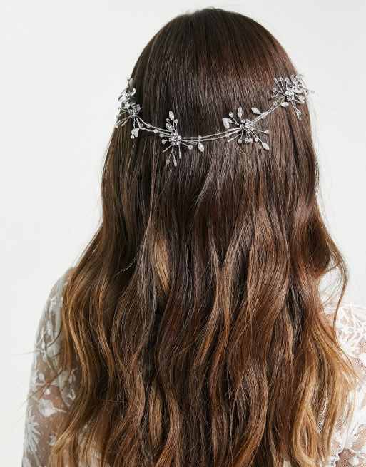 ASOS DESIGN - Sølvfarvet krone til baghovedet med krystalblomstdesign