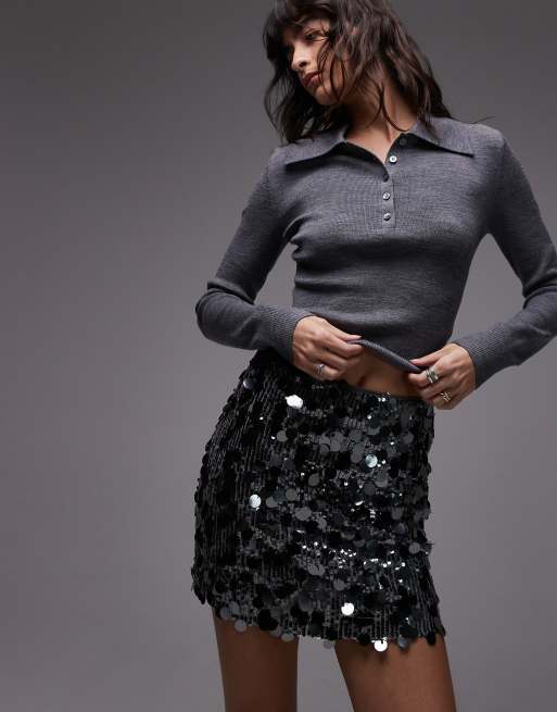 ASOS DESIGN - Sølvfarvet metallisk mininederdel med forskellige pailletter