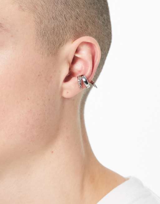 ASOS DESIGN - Sølvfarvet ørecuff med pig-detaljer