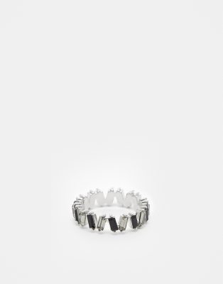 ASOS DESIGN - Sølvfarvet ring med baguetteformet krystal i sort