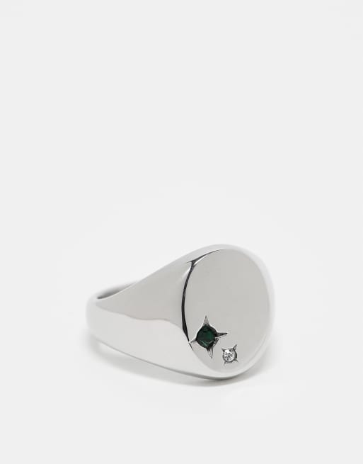ASOS DESIGN - Sølvfarvet signetring i rustfrit stål med grøn krystalsten