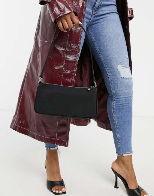 ASOS DESIGN - Smal 90'er skuldertaske i sort nylon