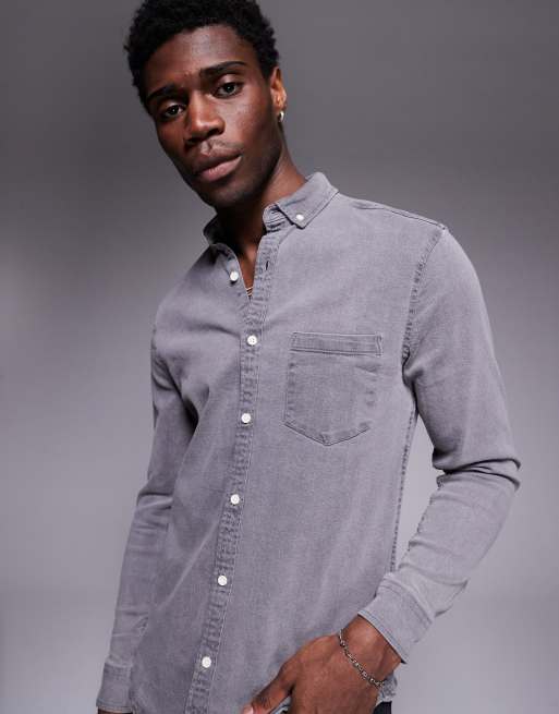 ASOS DESIGN - Smal denimskjorte med stretch i forvasket sort