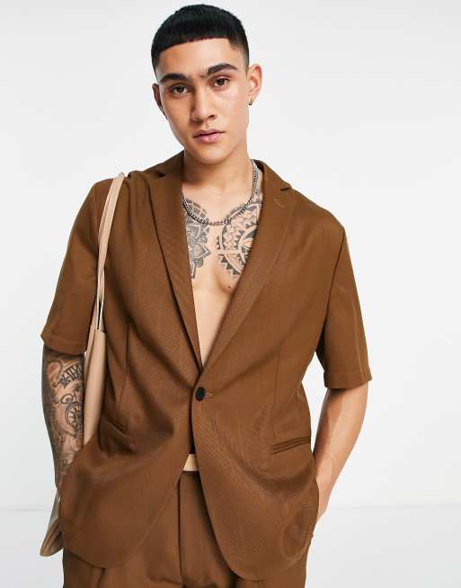 ASOS DESIGN - Smal kortærmet habitjakke i brun