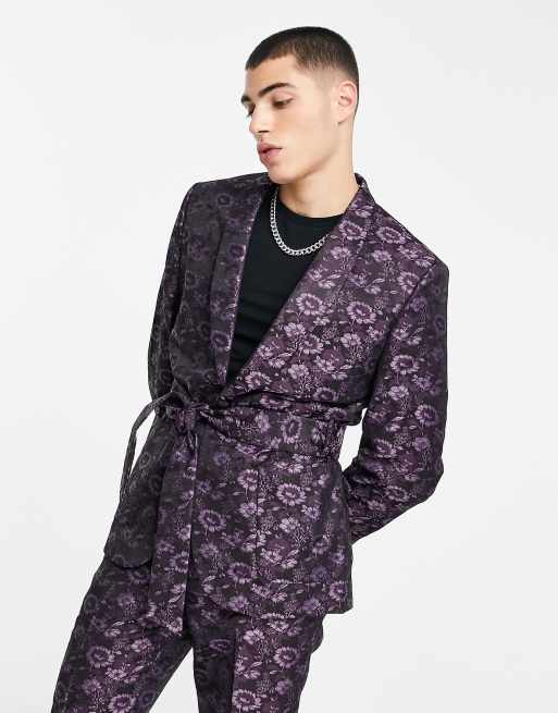 ASOS DESIGN - Smal smokingjakke med mørkt blomstermønster