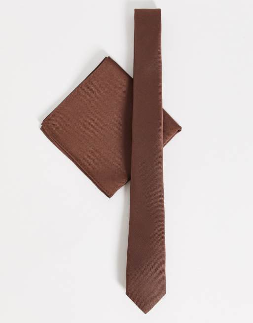 ASOS DESIGN - Smalt slips og lommeklud i chokoladebrun