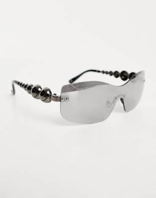 ASOS Design - Smiley Collab - Undfattede solbriller med detaljer på stængerne i sølvfarve