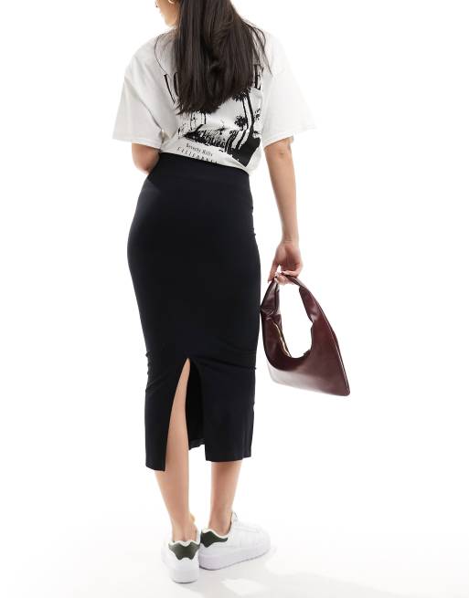 ASOS DESIGN - Sømløs, formgivende midinederdel med tubeform i sort