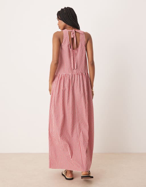 ASOS DESIGN - Smock-maxikjole med sløjfe på ryggen og rødt gingham-tern