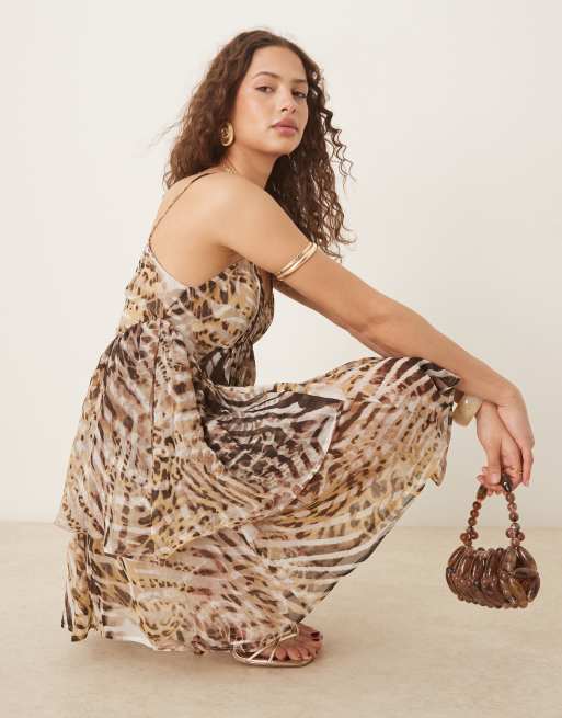 ASOS DESIGN - Smock-minikjole med cami-stropper og dyreprint