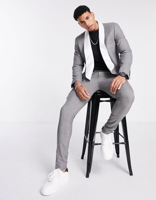 ASOS DESIGN - Smoking i slim fit med pepitatern og kontrastfarvet revers