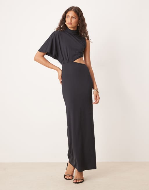 ASOS DESIGN - Sort asymmetrisk maxikjole med vingeærmer og udskæringsdetalje