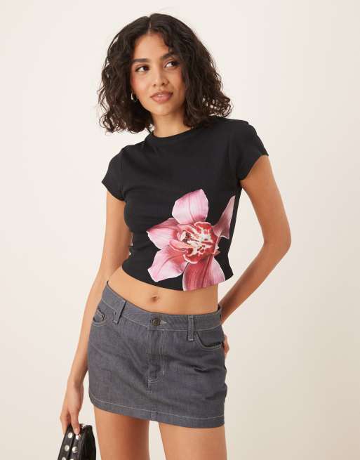 ASOS DESIGN - Sort baby-T-shirt med grafisk blomsterprint