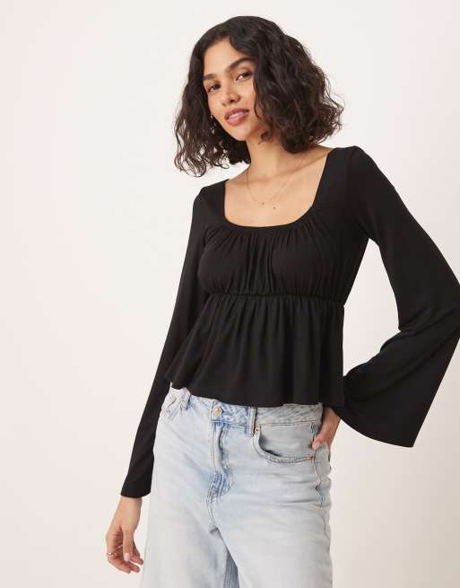 ASOS DESIGN - Sort babydoll-top med ærmer med svaj