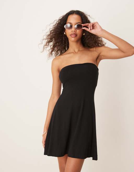 ASOS DESIGN - Sort bandeau-minikjole med kant med svaj