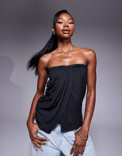 ASOS DESIGN - Sort bandeau-top med draperede detaljer og slids foran