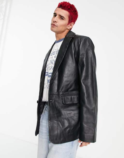 ASOS DESIGN - Sort blazer i ægte læder