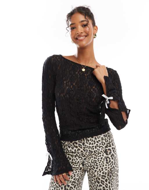 ASOS DESIGN - Sort blondetop med halsudskæring og sløjfedetaljer