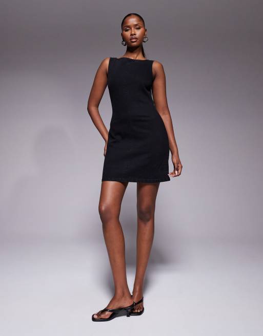 ASOS DESIGN - Sort bodycon-minikjole i denim med lige hals