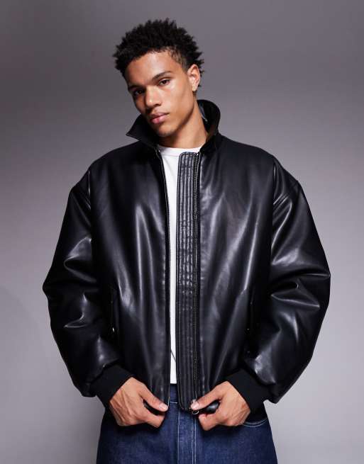 ASOS DESIGN - Sort bomber-jakke i imiteret læder