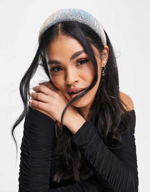ASOS DESIGN - Sort bred hårbøjle med rhinstensdetalje