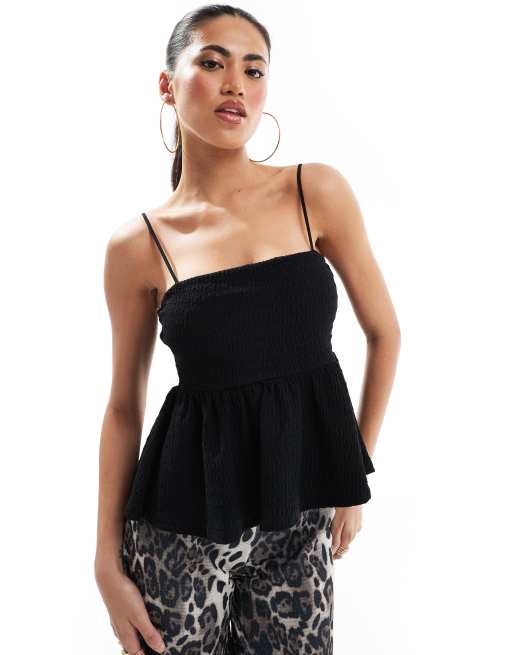 ASOS DESIGN - Sort cami-top med peplumkant og tekstur