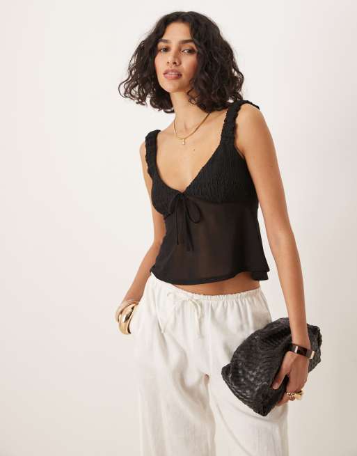ASOS DESIGN - Sort cami-top med tekstur i meshblanding