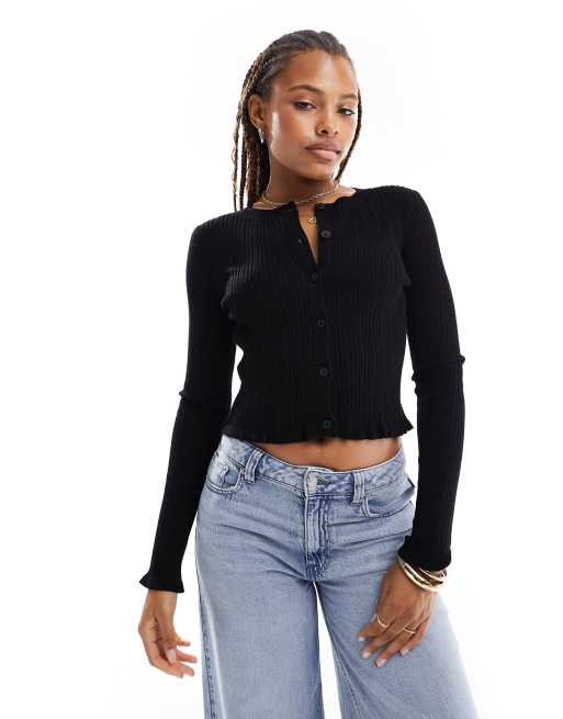 ASOS DESIGN - Sort cardigan med knapper og flæser - Del af sæt