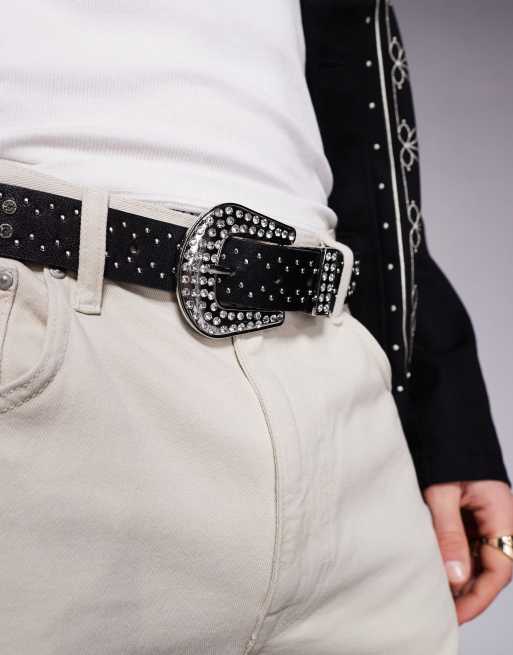 ASOS DESIGN - Sort cowboybælte med krystalnitter i imiteret læder