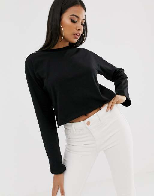 ASOS DESIGN — sort cropped T-shirt med overlocksøm