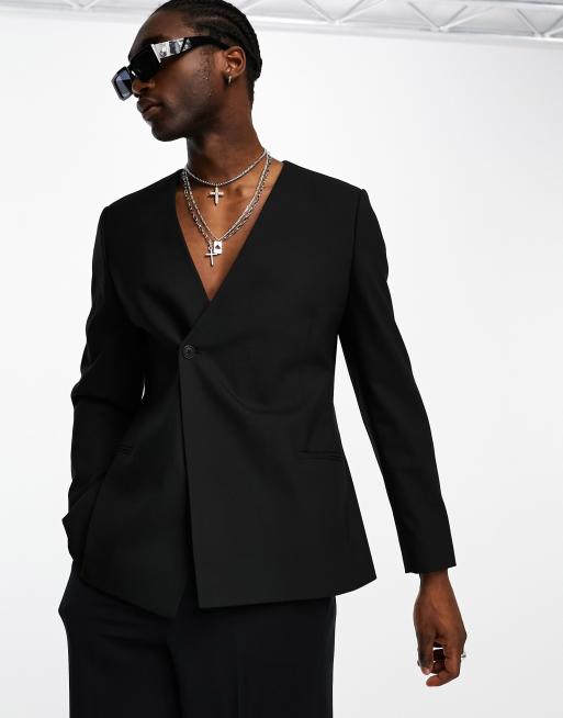 ASOS DESIGN - Sort dobbeltradet slim-blazer uden krave