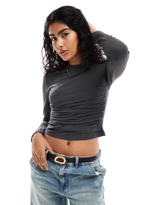 ASOS DESIGN - Sort draperet top med lange ærmer