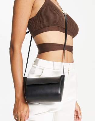 ASOS DESIGN - Sort enkel crossbody-taske med flaplukning i læder