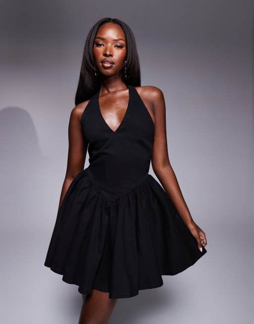 ASOS DESIGN - Sort halterneck-minikjole i denim