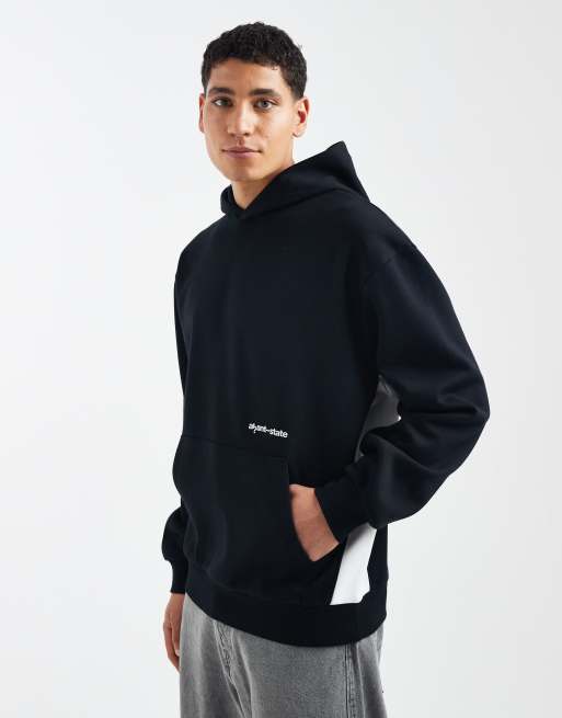 ASOS DESIGN - Sort hættetrøje med afslappet pasform og print samt sidepaneler