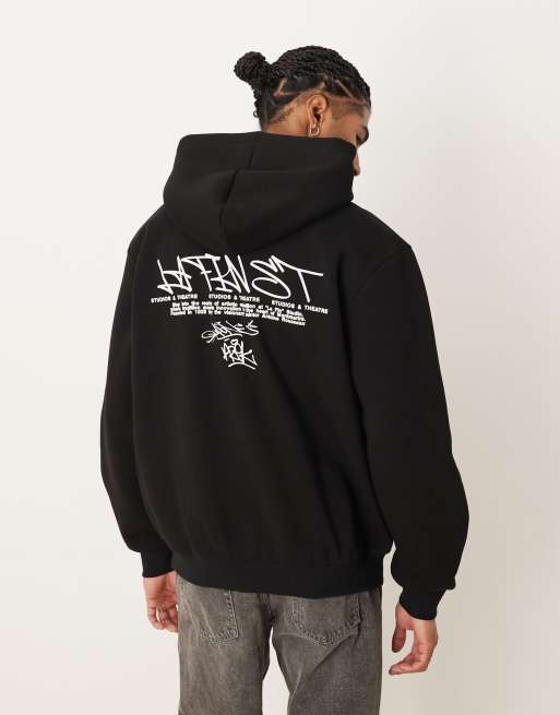 ASOS DESIGN - Sort hættetrøje med tekstprint i afslappet pasform