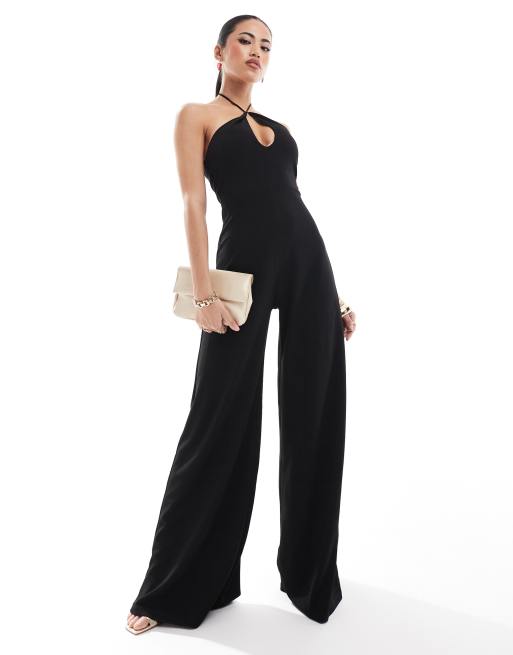 ASOS DESIGN - Sort jumpsuit med udskæring halterneck og ben med vidde