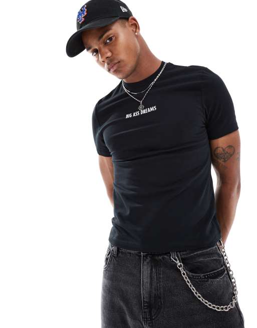 ASOS DESIGN - Sort, krympet og tætsiddende T-shirt med slogan på brystet