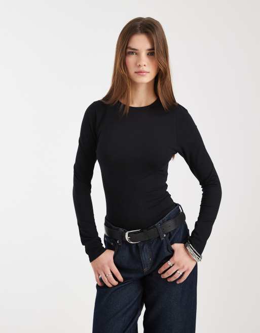ASOS DESIGN - Sort langærmet bodystocking i bomuld