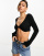 ASOS DESIGN - Sort langærmet croptop med snoet front i ribstrik