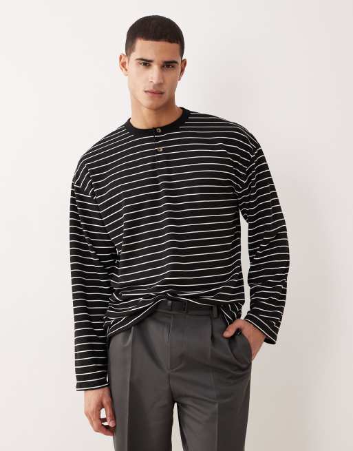 ASOS DESIGN - Sort langærmet oversized T-shirt med henleyhals og hvide striber