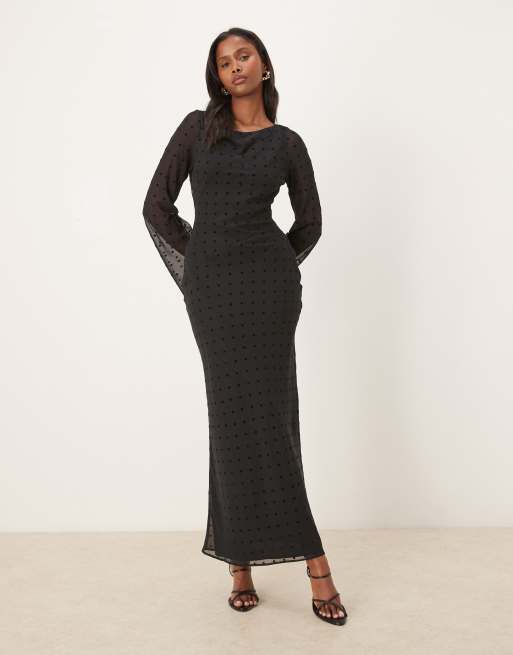 ASOS DESIGN - Sort maxikjole i chiffon med engleærmer og prikker