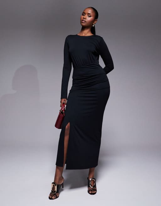 ASOS DESIGN - Sort maxikjole med indsyet talje og slids foran